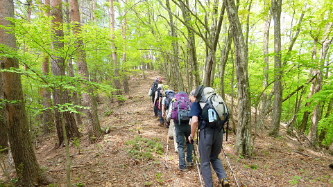 山梨県秋山の阿寺沢が登山口です。山道はよく踏まれており、新緑を楽しみながらゆっくり登りました。
