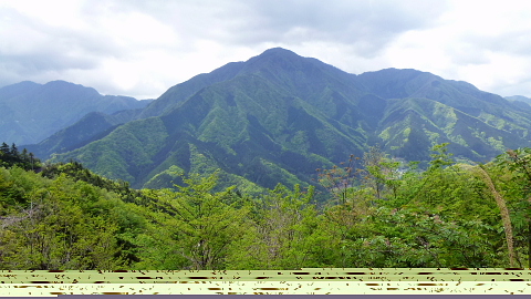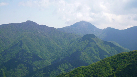この新緑に元気をもらいながら尾根道を行きます。左側が道志、右側が阿寺沢です。