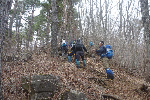 はじめから急登です。雪はありません。ゆっくりゆっくり登っていきます。