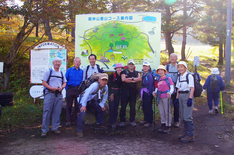 今年の秋の登山は大満足でした。・・・5合目の紅葉を背に記念写真を撮る。