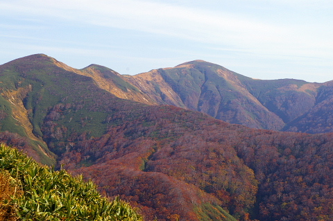 全山紅葉の中、薬師岳に登頂、そこから和賀岳まで2時間頑張って登りました。