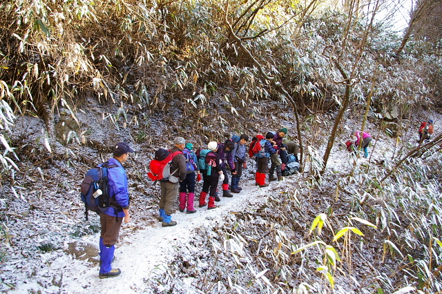 夜雪が降ったらしく、登山道は雪が積もっていました。10:05