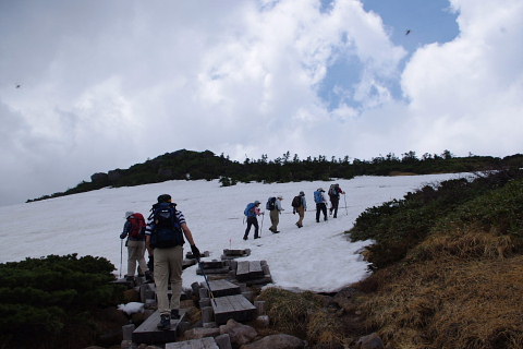 山頂からの眺望はありませんでしたが、のんびり雪山を楽しむことができました。下山後は白布温泉東屋旅館です。汗を流しおいしい料理を楽しむことができました。