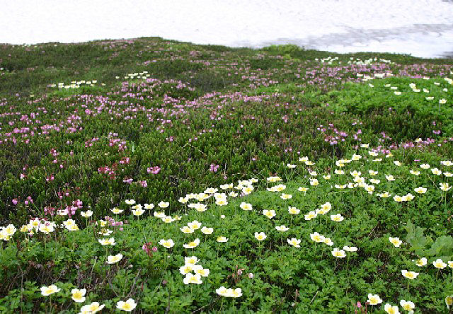 チングルマとエゾノツガザクラの大群落です。裾合平はこのような群落が広がっているそうです。