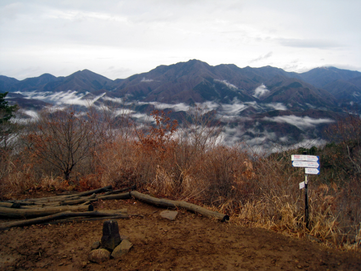 2007/12/29 恒例念押し忘年登山 高川山 富士山は裾野しか見えませんでしたが、近くの山々がきれいに見渡せて、何とも幽玄な雲の織り成す景観でした