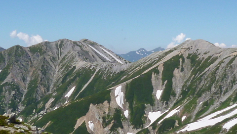 五色ヶ原と薬師岳です。切れ落ちている崖が立山カルデラです。