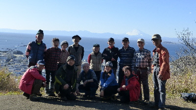 三浦アルプスはこれまで行った山とは違う雰囲気がありました。それは、冬枯れの林とは違い常緑広葉樹の林の中を歩くコースだったことです。所々で富士山が、顔を出してくれました。相模湾に浮かぶ富士山も大きくてすばらしいです。逗子駅前の居酒屋で今年1年の山行の無事を記念し乾杯しました。