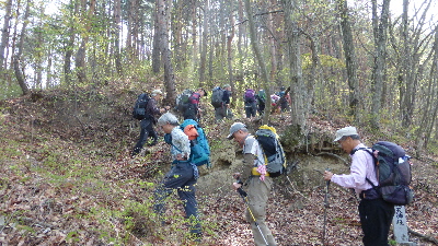 神領山へ向かいます。大きな木が倒れていました。これからの世代に養分を送っているのでしょう。