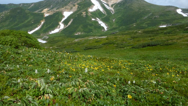 裾合平から中岳温泉まではチングルマの群落がつつきます。